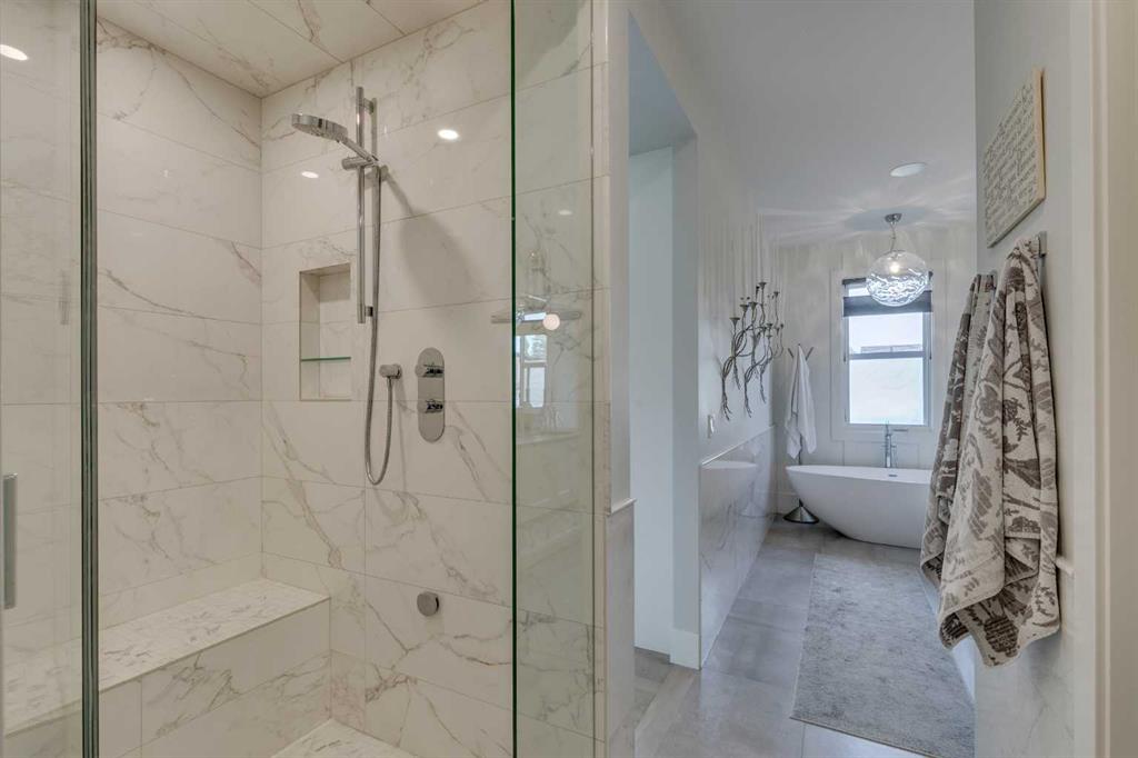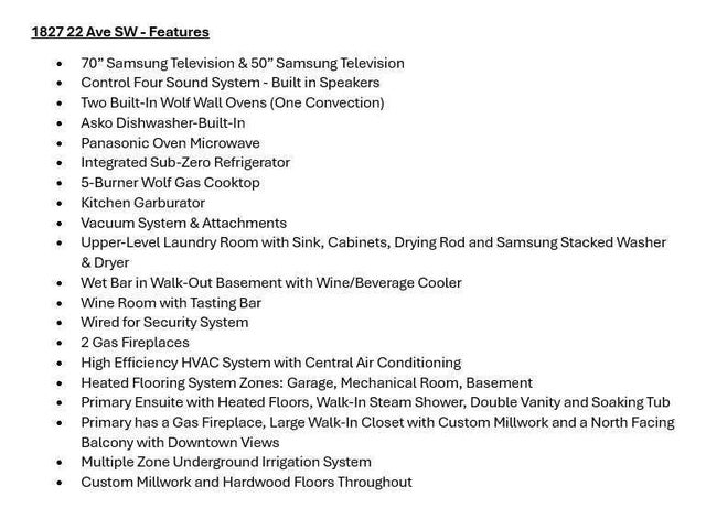 Welcome to an inner-city English garden living - with 2,847 sq ft of luxury situated in the vibrant community of Bankview. Offering 5 bedrooms throughout, this semi-detached walk-out home is perfect as an executive and/or family home. Built by luxury builder Grandscape Homes with superior finishes and completed by interior designer Denise Panagakos, this stunning home blends contemporary design with comfortable living finishes. The S & W facing main level has 10 ft ceilings, a two-storey front foyer and floor to ceiling windows, flooding the home with natural light. The gourmet kitchen has a large island with breakfast bar, pantry plus amazing storage. Top end appliances include a 5 burner Wolf Cooktop, dual Wolf wall ovens (one convection) and an integrated Sub-Zero fridge. The open living/dining area with gas fireplace leads to a south facing balcony through large sliding doors. On the 2nd floor, French doors lead to the private primary suite that occupies the entire level. Complete with a gas fireplace, a large walk-in closet, and a north facing balcony with downtown views. The 5-pc ensuite has a soaking tub, double vanity, a large steam-shower, and heated flooring. The 3rd level has 2 large bedrooms, both with walk-in closets. This floor also includes a 5-pc bathroom and a laundry room with sink and storage. On the 4th level is a very large loft bedroom/suite with downtown views and a 4-pc bathroom - perfect as a bedroom, office space or living area. The fully finished walk-out level has heated polished concrete floors, a 5th bedroom or office, and a 3-pc bathroom with an oversized walk-in shower. This level is the perfect entertaining area with a wet bar and wine room off the sitting area and walk-out covered patio. The sunny south facing back yard is professionally landscaped with plenty of shrubs and trees creating a private and quiet oasis. Backing directly onto a city park the home's multiple outdoor living spaces will bring the outside in, either from the main living area balcony, or the large lower patio. Throughout the entire home you will find custom millwork cabinets providing ample storage. This clean air home has high efficiency heating/ventilation and includes central air conditioning. The double attached finished garage also has heated floors. Its minutes to downtown and walking distance to the shops, restaurants and amenities of either 17th Avenue or Marda Loop - also close to Mount Royal, Downtown Core, University of Calgary, Foothills Hospital Campus, SAIT & Kensington. Experience both quiet park and vibrant inner city living & book a showing with your realtor today!