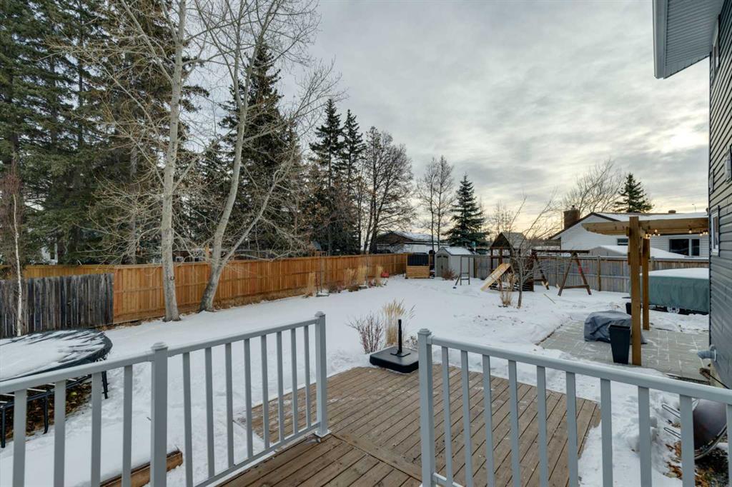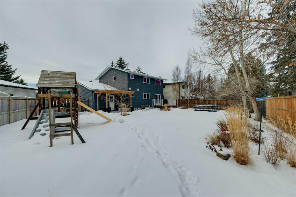 Situated on a large lot in Braeside and offering over 2,400 sq ft of finished living space, this 4 bedroom, 4 bathroom home is perfect for growing families looking for a quiet family friendly neighbourhood, close to schools and all amenities! The cool colour pallet and recessed lighting make this home nice and bright. Double pane windows, knockdown ceilings, built-in speakers and central air thru-out. The main floor has a large living room with gas fireplace that opens on the main dining area, hardwood floors, a 2 pc bath and mudroom (updated 2022) . The kitchen is well appointed with stainless steel appliances, breakfast bar, stainless steel apron front sink and tons of storage. The upper level has 3 nice sized bedrooms and a 4 pc bath. The primary is complete with large walk-in closet and ensuite with oversized walk-in shower. The basement was finished in 2022 complete with a 4th bedroom, 4 pc bath, laundry room and large rec room. A new radon system was installed in 2025. The huge NE facing back yard is perfect for outdoor living featuring a patio with pergola (2023) as well as a 2 level deck of the kitchen, perfect for grilling and entertaining. There is an oversized gate to utilize the backyard space for additional parking. There is a single attached front drive garage and driveway with room for 2 additional vehicles. Close to the Canyon Meadows & Willow Park Golf Courses, Fish Creek and Tazo Costco, steps to Braeside off leash area & easy access to 14 St, Anderson Rd and Stoney Trail Ring Road. Minutes to Rockyview General Hospital & Chinook Centre.
